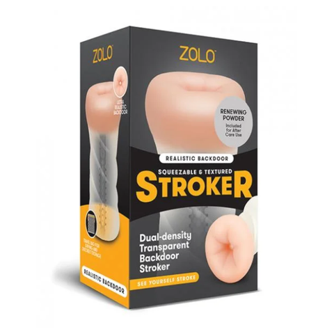 The Zolo Realistic Backdoor Squeezable Textured Stroker Is A Dual-Density Transparent Masturbator Designed To Replicate The Appearance And Texture Of The Anal Orifice. This Clear Non-Phthalate Material Allows Visual Stimulation During Use. The Product Includes Renewing Powder And A Travel Bag To Maintain Dryness And Cleanliness. Suitable For Personal Use This Adult Toy Is Part Of The Sexual Wellness Category.