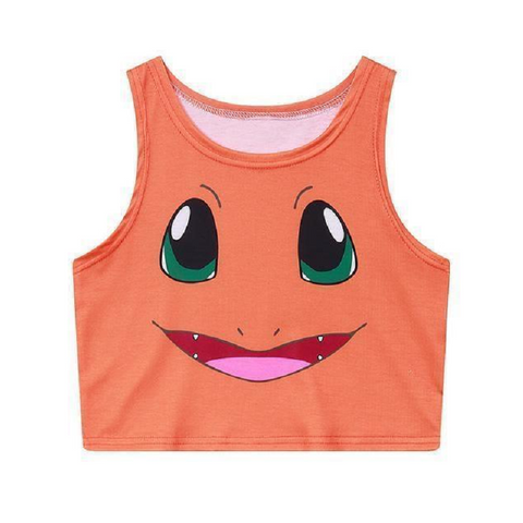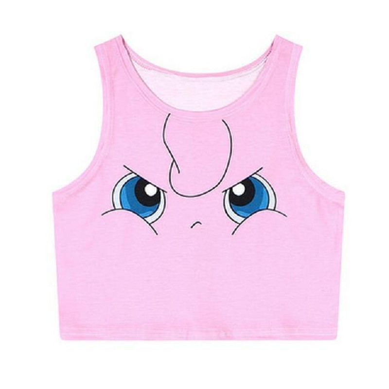 These Pokemon Inspired Cropped Tank TopsHave A Vibrant Screen Print Design With A Traditional Wife Beater Racerback StyleUpper Body.