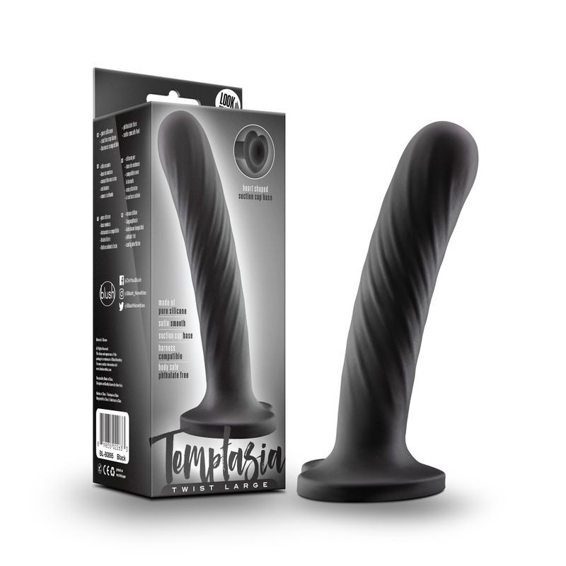 Bring Extra Pleasure And Style To Your Playtime With The Temptasia Twist Large. Designed With A Swirling Texture That’S Perfect For Stimulating The G-Spot Or Anal Canal This Toy Combines Beauty With Functionality. Its Heart-Shaped Suction Cup Base Adds A Playful Touch While Providing Stability For Hands-Free Fun And It’S Harness Compatible For Partner Play. Crafted From 100% Platinum-Cured Silicone It Offers A Satin-Smooth Feel Body-Safe Confidence And Effortless Cleaning.