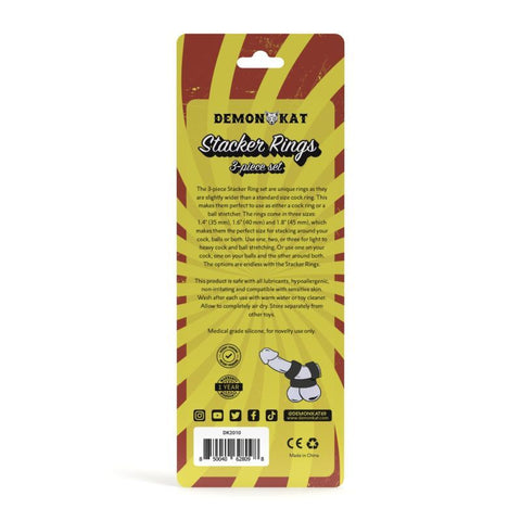 The 3-Piece Stacker Rings Set Are Unique Rings As They Are Slightly Wider Than A Standard Size Cock Ring. This Makes Them Perfect To Use As Either A Cock Ring Or A Ball Stretcher. The Rings Come In Three Sizes: 1.4” (35Mm) 1.6” (40Mm) And 1.8” (45Mm) Which Makes Them The Perfect Size For Stacking Around Your Cock Balls Or Both. Use One Two Or Three For Light To Heavy Cock And Ball Stretching. Or Use One On Your Cock One On Your Balls And The Other Around Both. The Options Are Endless With The Stacker Rings.